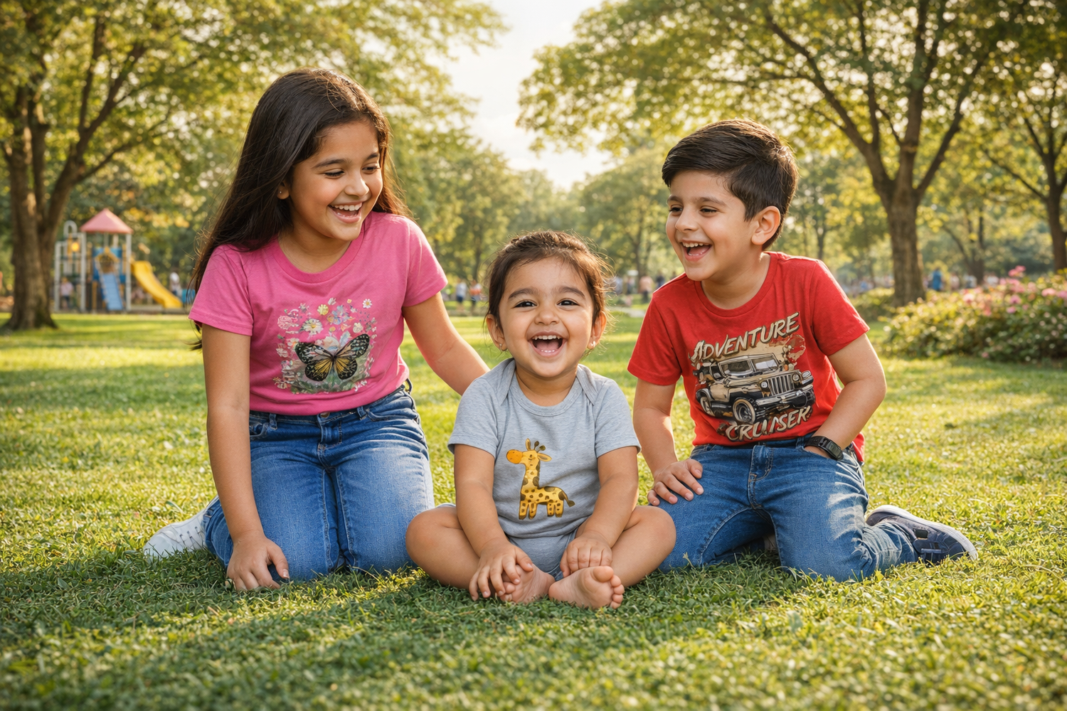 At YourGiggles, every T-shirt is carefully curated to celebrate your child's uniqueness. We handpick and compose exclusive designs that you won't find in other stores. Premium quality fabrics meet playful prints that make your little one stand out!